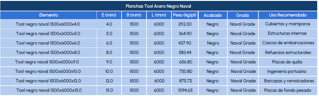 PLANCHA TOOL ACERO NEGRO NAVAL